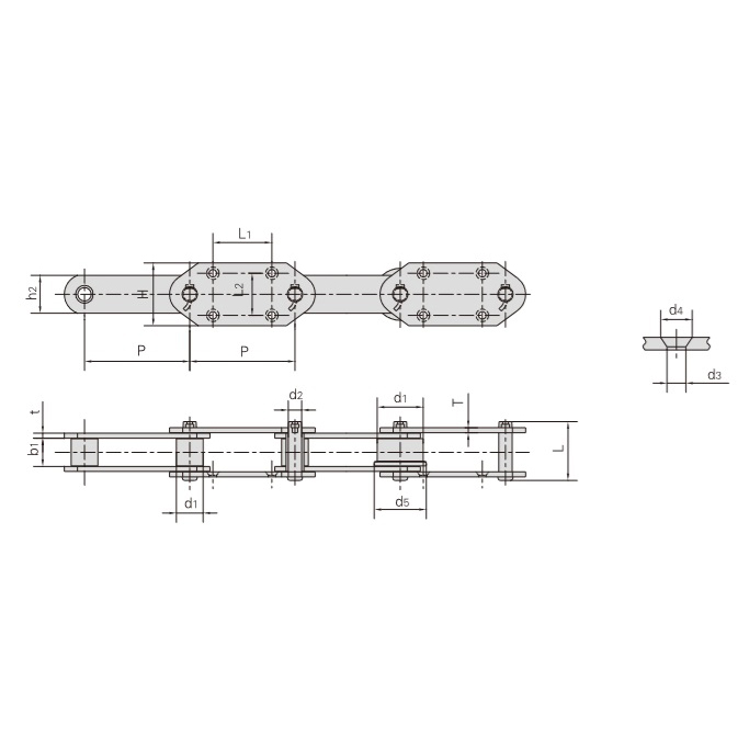 - Yüksek Stabilite:Her bir rulman, makaraların sorunsuz bir şekilde dönmesini sağlayan bir pim ve manşondan oluşur. Mafsallı tasarım, zincirin yüksek basınç ve darbeye dayanmasını sağlayarak stabilite ve güvenilir taşıma sağlar.